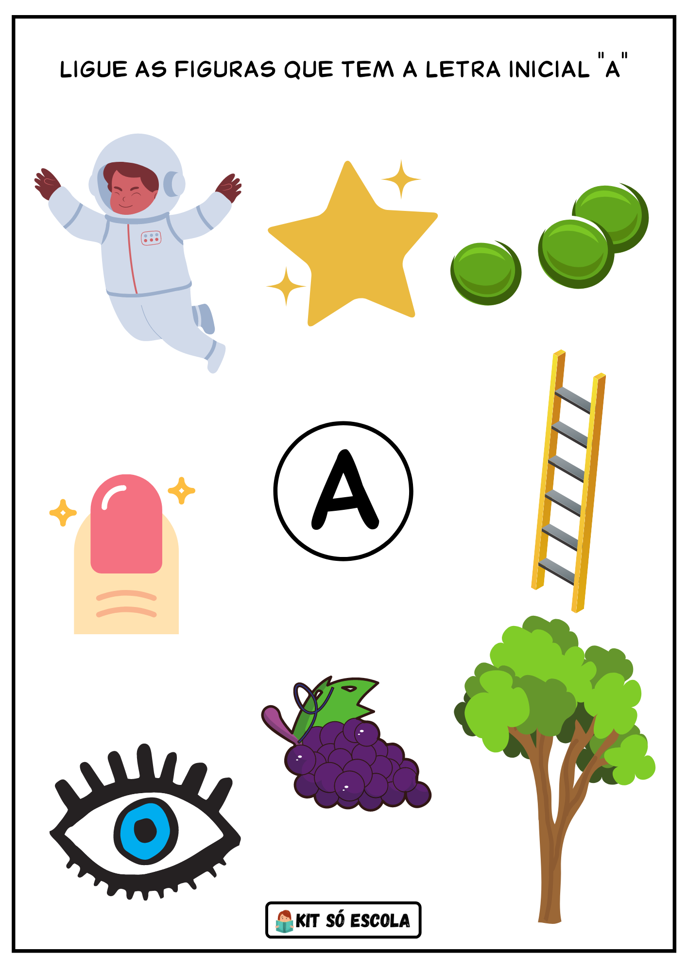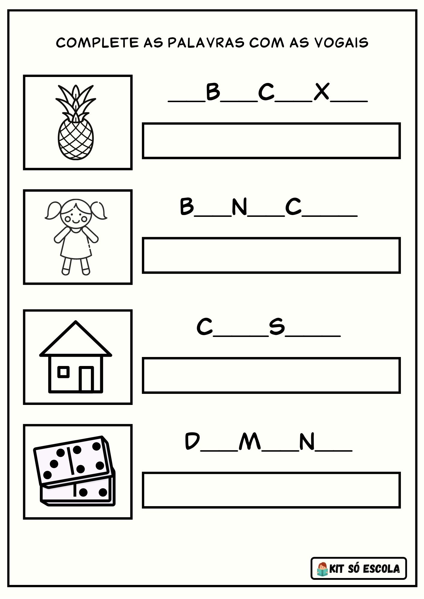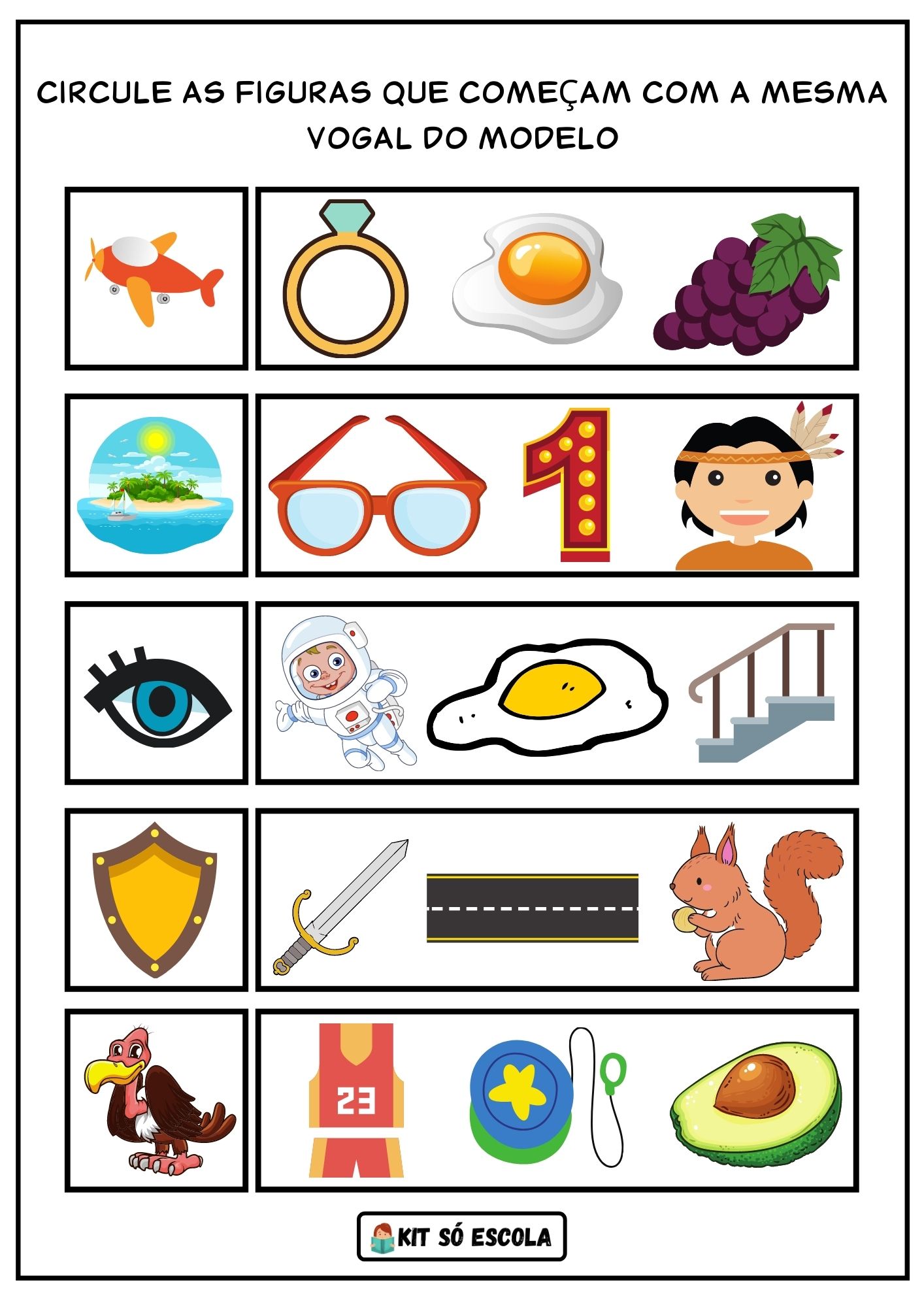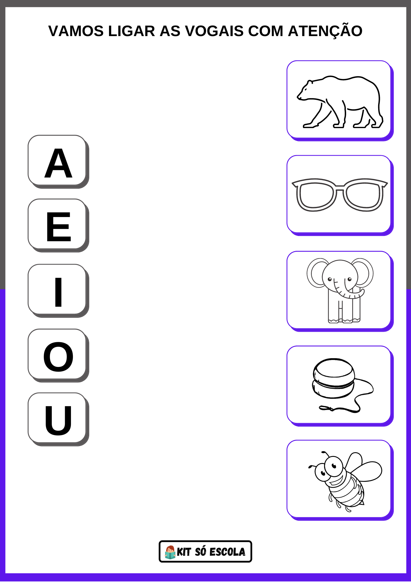 O material tem por objetivo estimular o ensino das vogais, treino grafomotor, treino fonológico, treino de atenção e reconhecimentos do sons das imagens e vogais.