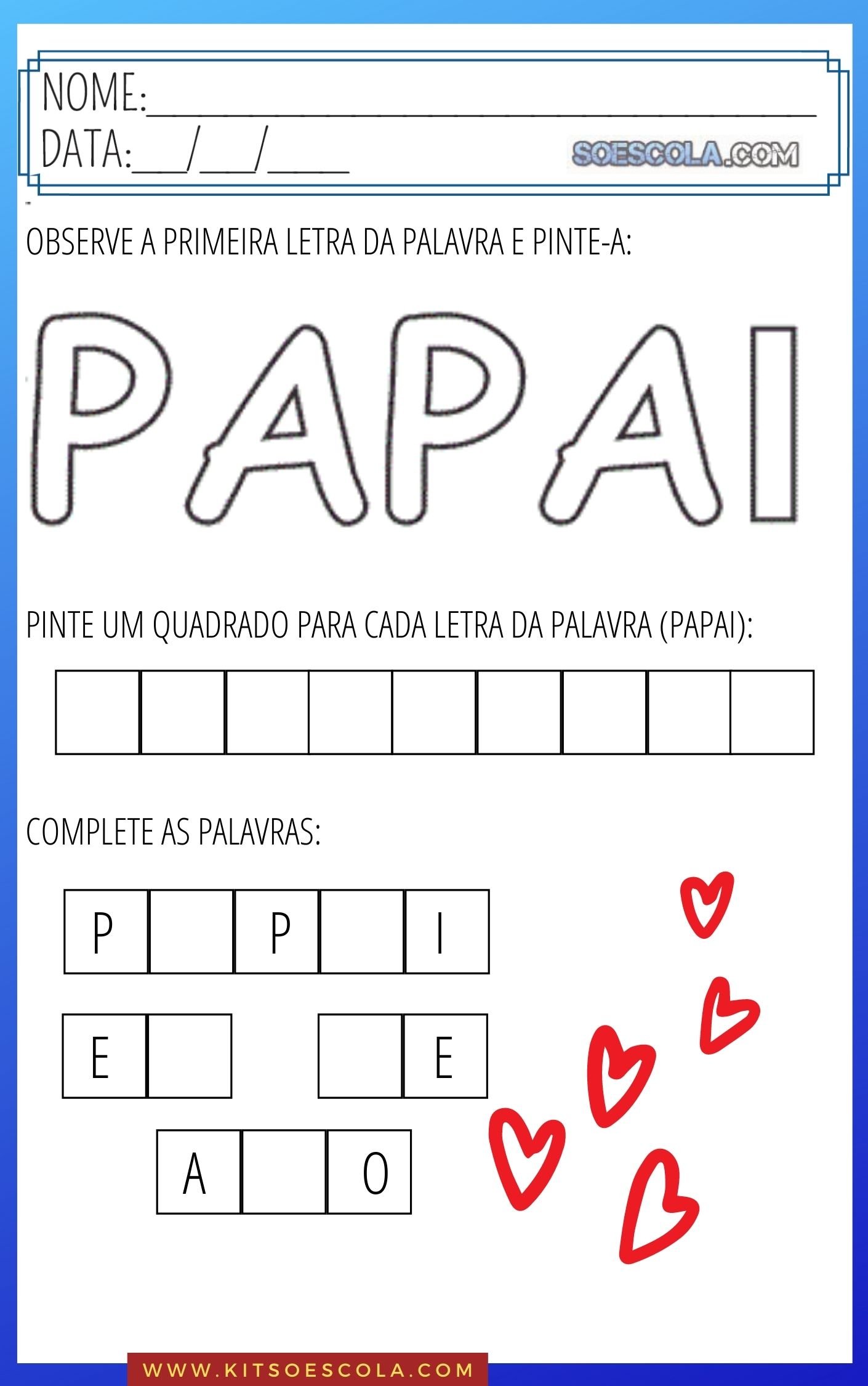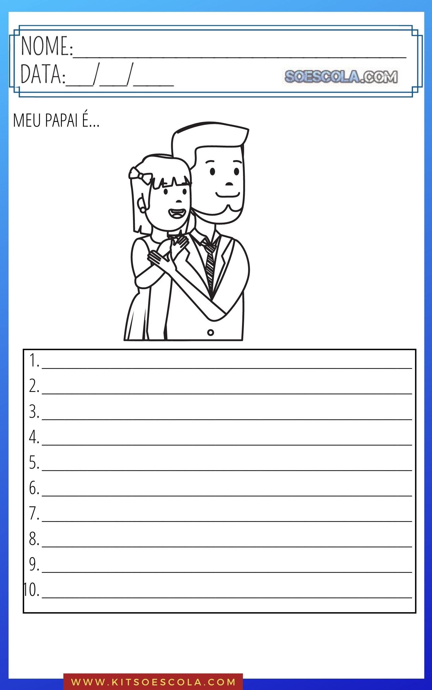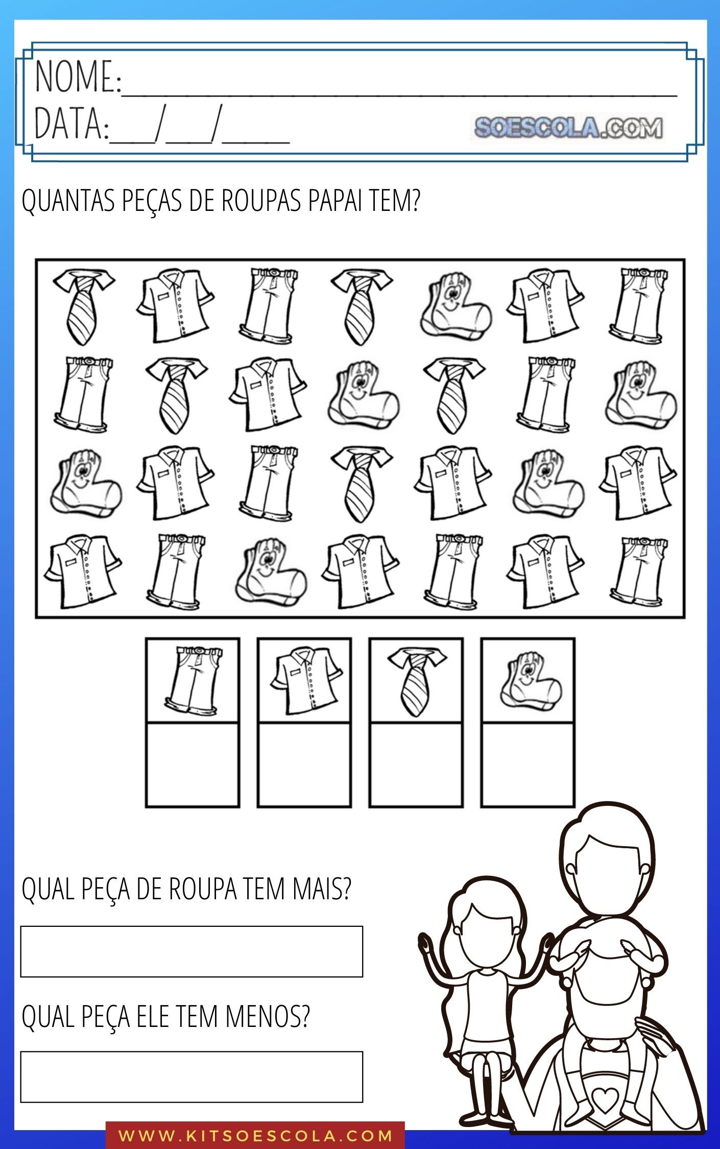 Olá, você já viu nosso novo KIT DE ATIVIDADES para trabalhar o DIA DOS PAIS com as crianças das series iniciais? NÃO? Então confira um pouco sobre ele e alguns exemplos: