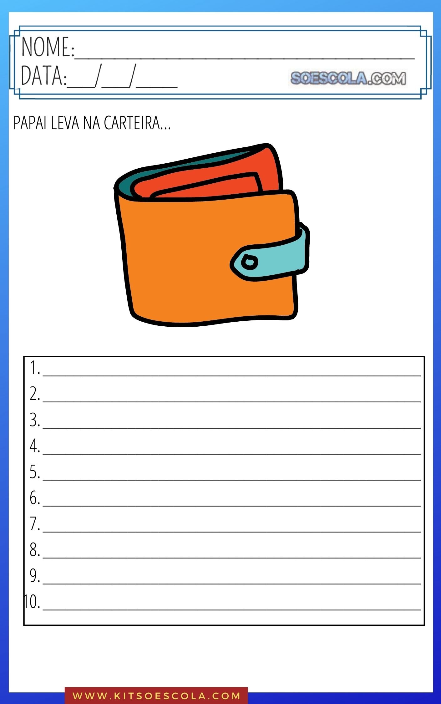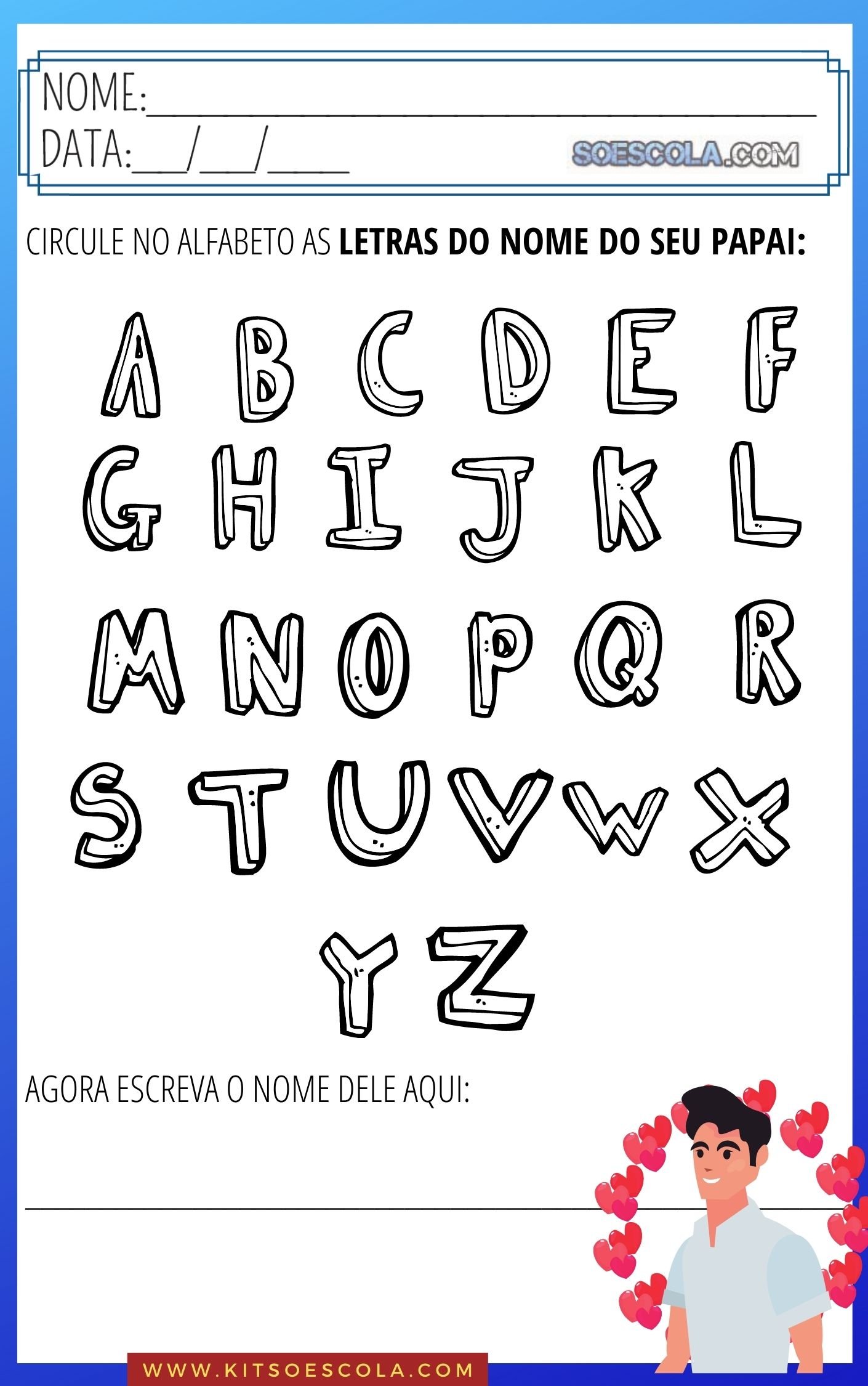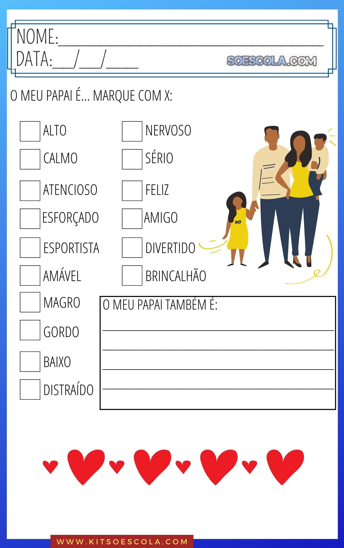 Olá, você já viu nosso novo KIT DE ATIVIDADES para trabalhar o DIA DOS PAIS com as crianças das series iniciais? NÃO? Então confira um pouco sobre ele e alguns exemplos: